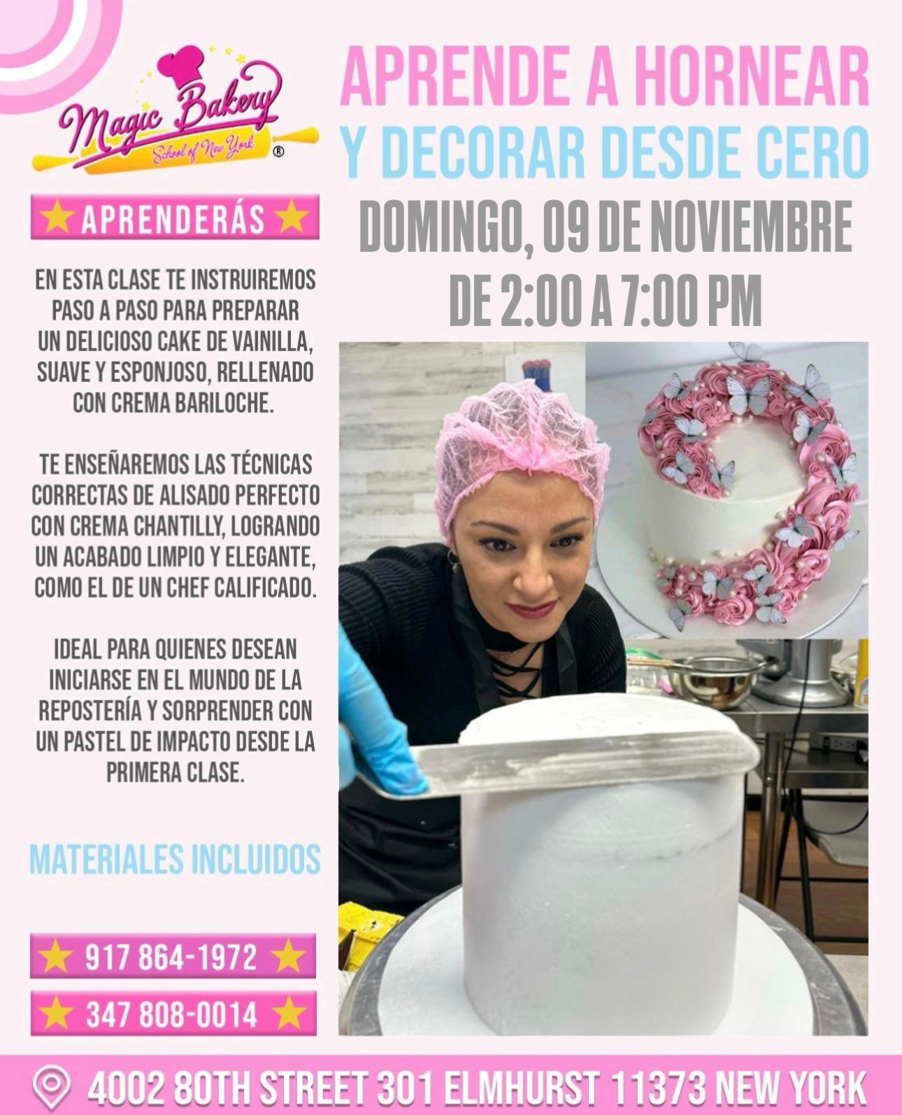 Si siempre has soñado con hornear y decorar un cake hermoso, esta clase es para ti.