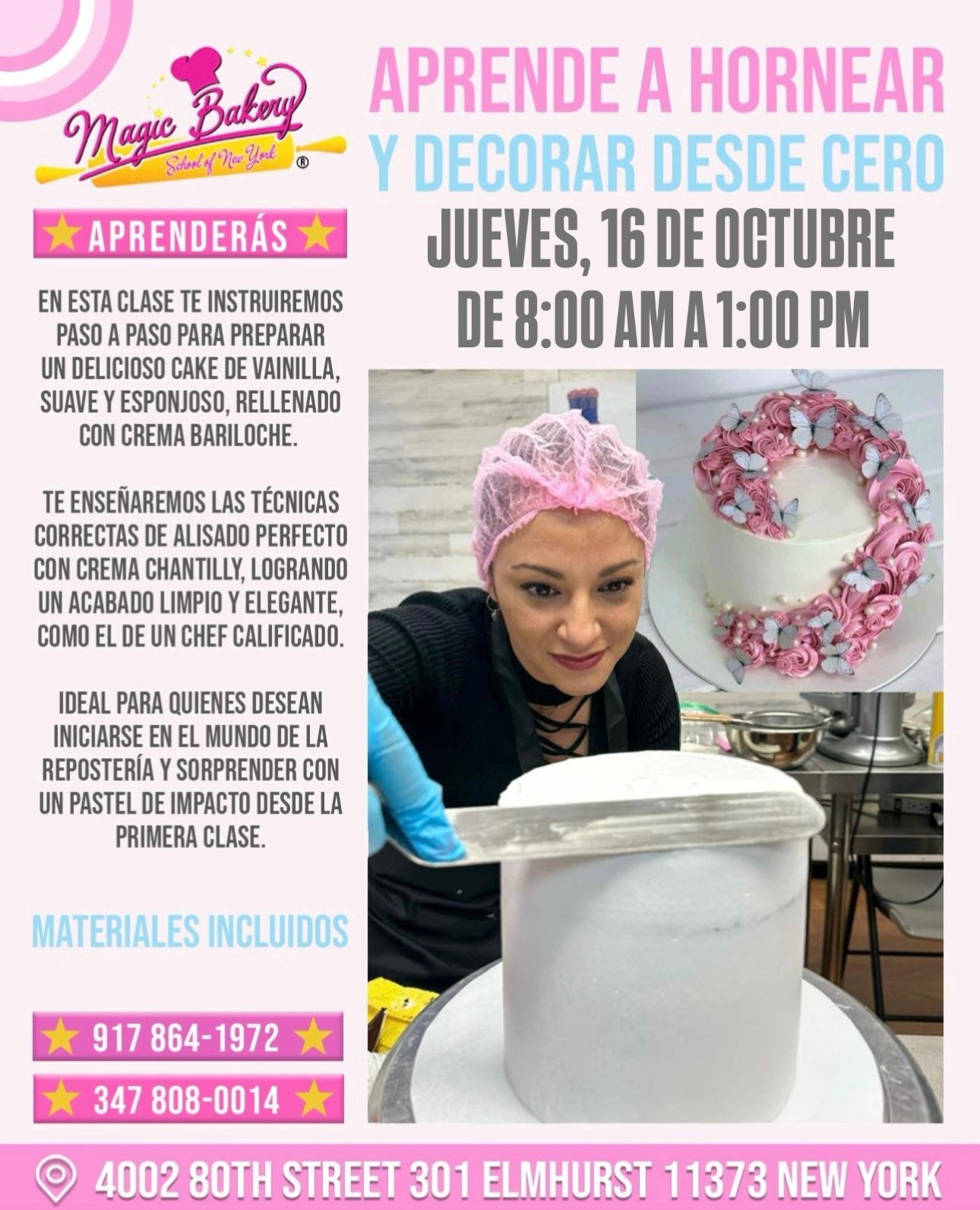 👩🍳 En una sola mañana aprenderás desde la preparación de un bizcocho suave y delicioso, hasta lograr un acabado liso y elegante con crema chantilly, digno de un chef profesional.